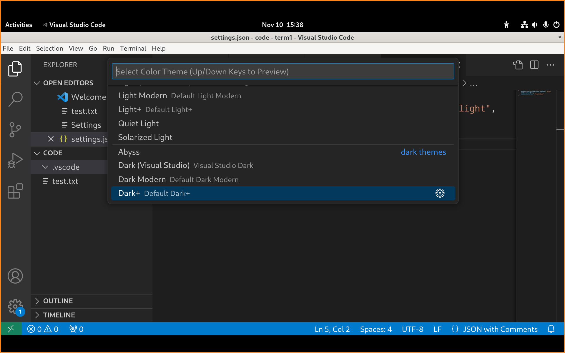 If you wish you can install the extension and you will have more color themes listed as shown in the following figure: